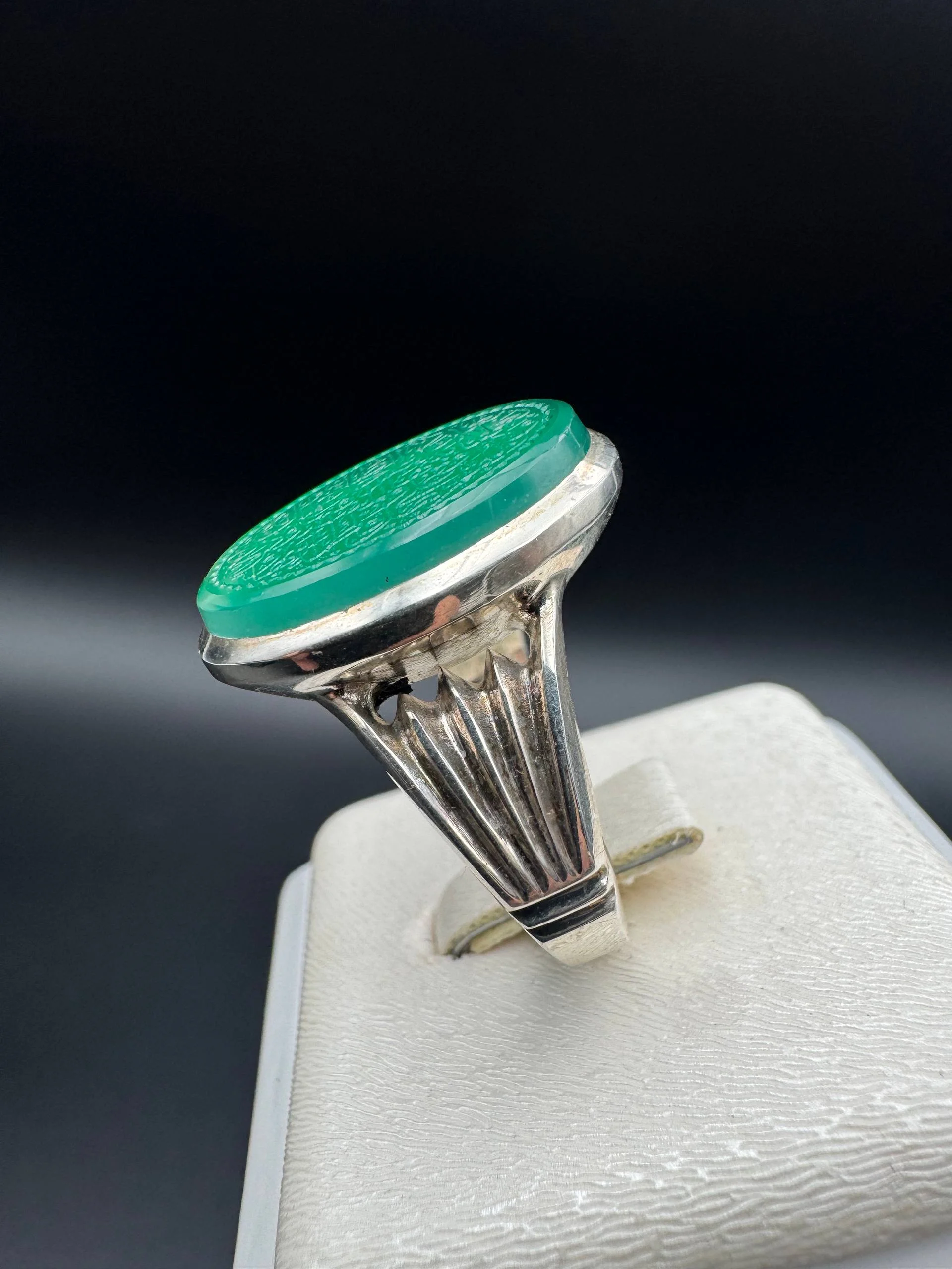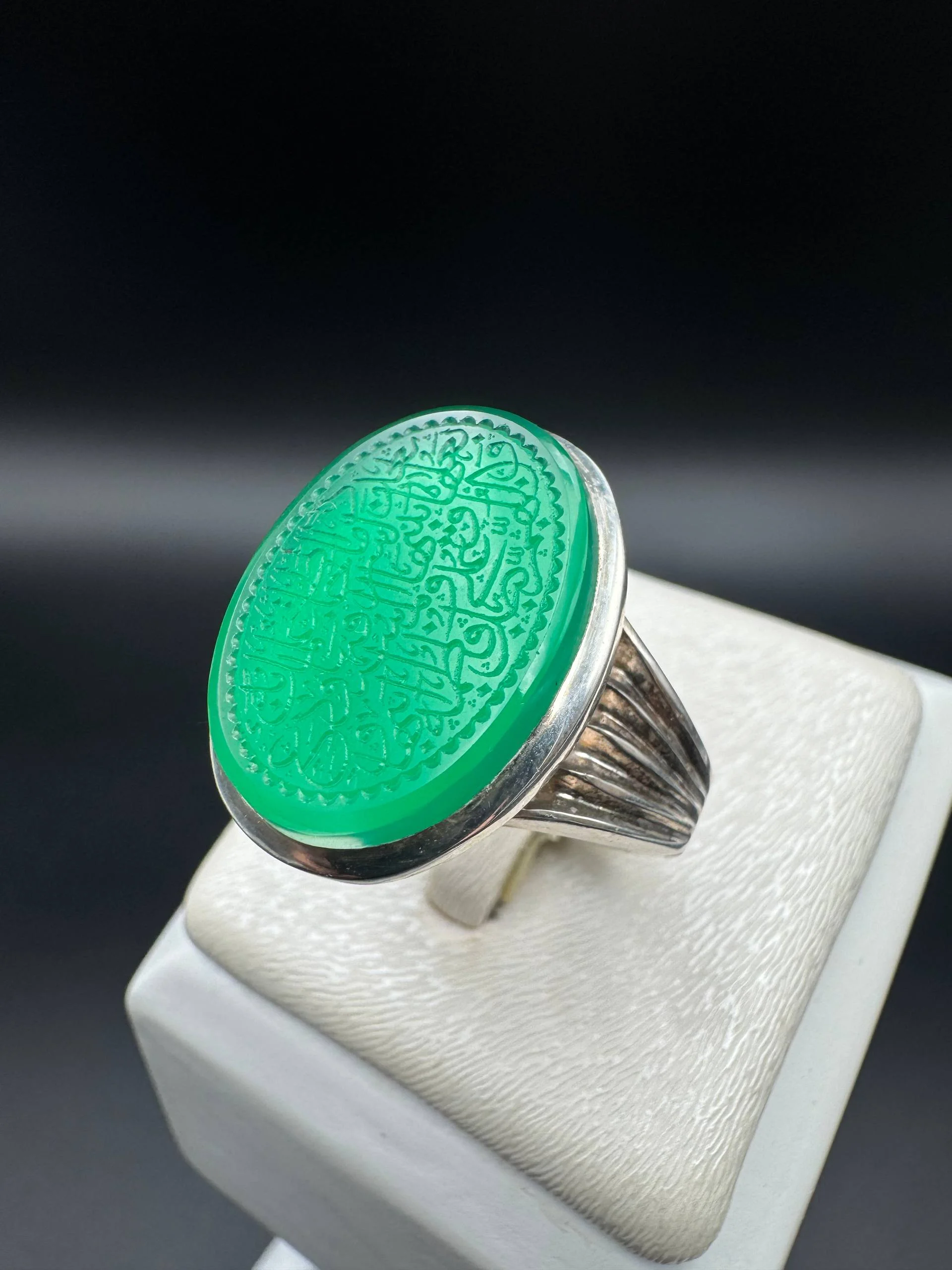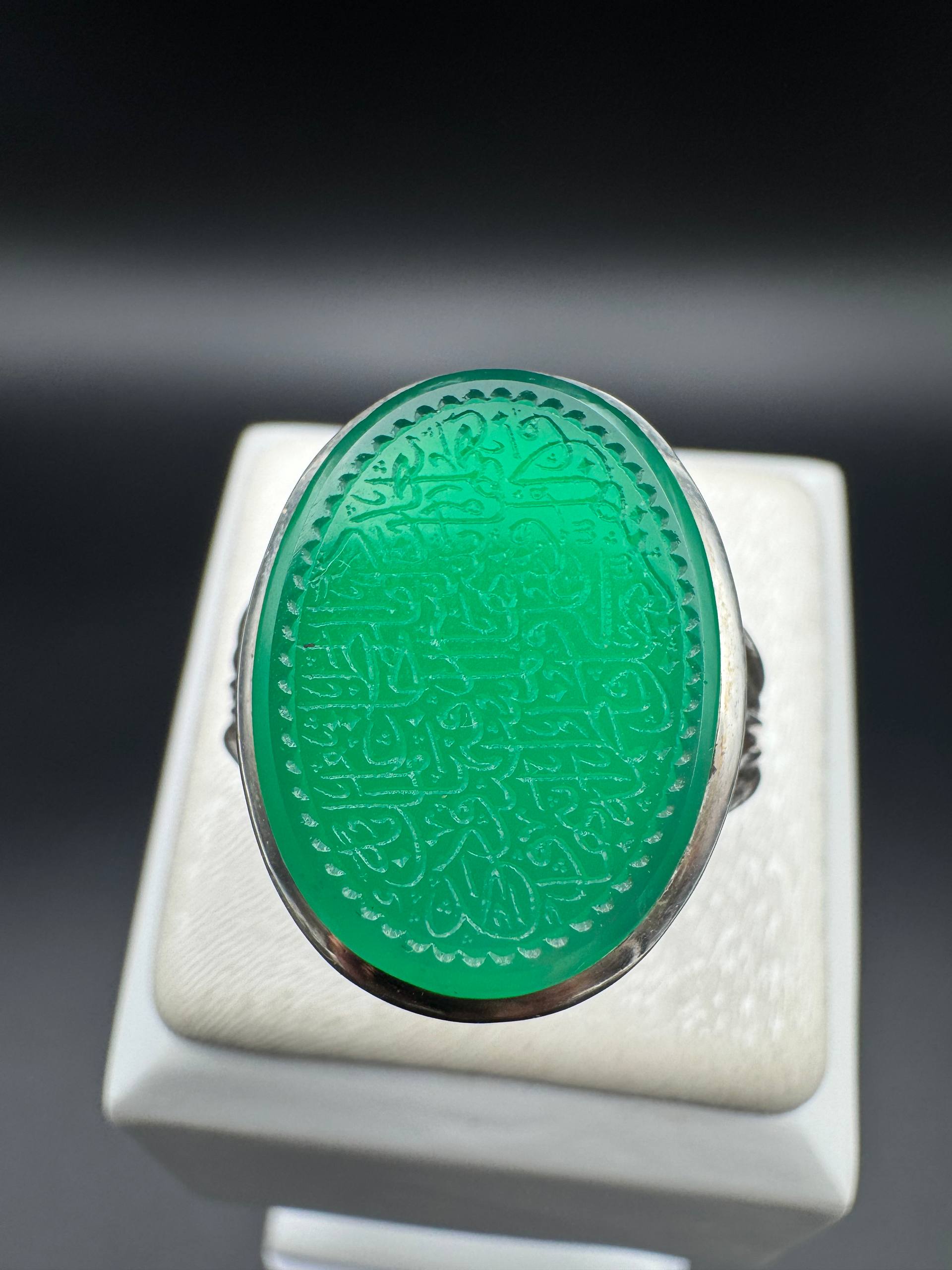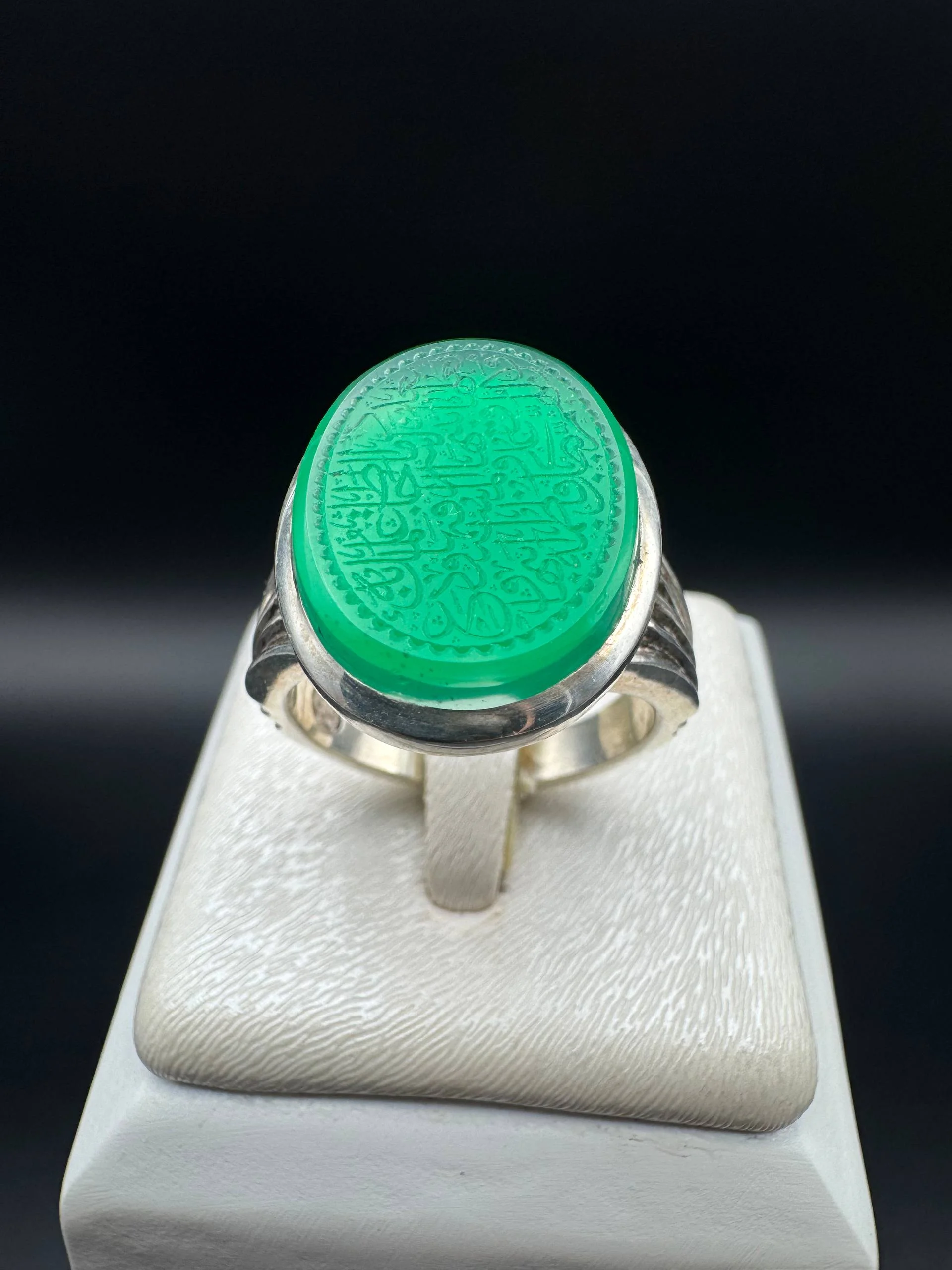انگشتر عقیق سبز مردانه با ذکر صلوات فاطمیه